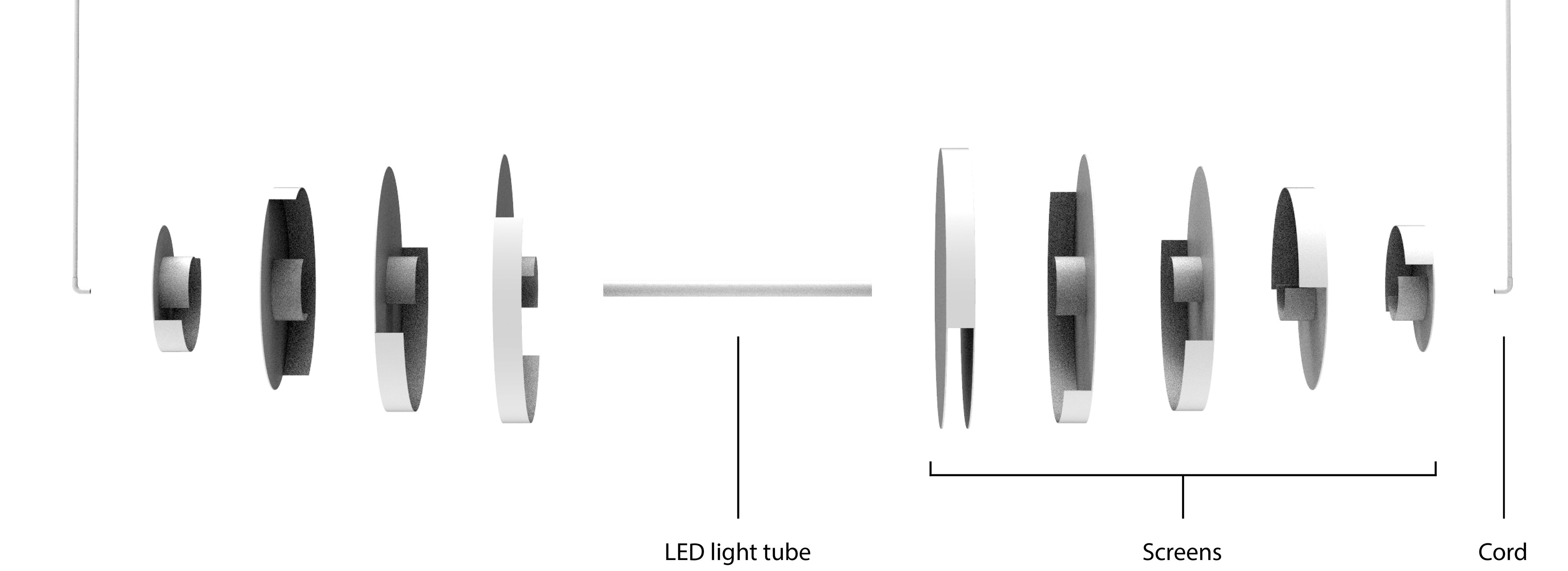 Furthermore the design makes it possible to vary the number of screens and thus adapt the overall shape of the lamp.